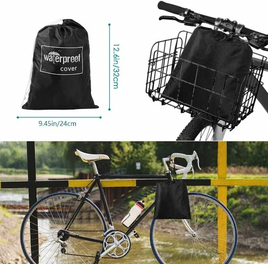 - 2 winddichte gespen: het elastische koord aan de onderkant en de 2 winddichte gespen zorgen voor een goede pasvorm op je fiets en maken het winddichter. Beide wielen beschikken over een winddichte gesp, die ervoor zorgt dat de afdekking niet naar beneden glijdt en weggeblazen wordt.