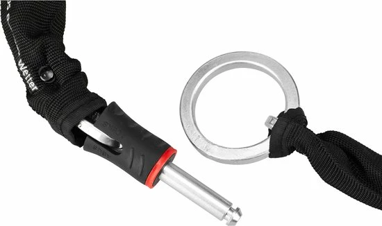 DUBBELE VEILIGHEID TEGEN FIETSDIEFSTAL Eenvoudiger kan het niet ? met deze ringslotketting van gehard staal heeft u de ideale tweede beveiliging voor uw fiets. De ringslotketting CHAIN van ABUS maakt dubbel beveiligen van uw fiets voor u zeer eenvoudig: Eenvoudig de ketting om een vast object leggen, het kettinguiteinde met de sluiting door de ring aan de ketting treken en daarna in de slotbehuizing steken. U heeft geen extra sleutel nodig en het separaat vergrendelen van de beugel is ook niet nodig. De ringslotketting CHAIN is geschikt voor de ABUS ringsloten 4960, 5850, 5650 en 5950.