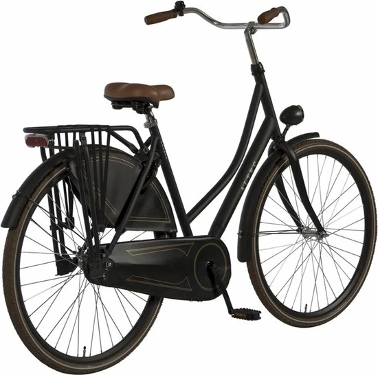 Altec London Omafiets 28 inch Mat Zwart 55cmOnze Altec fietsen zijn nog niet afgemonteerd en worden in een doos verstuurd. Zie de handleiding onderaan voor instructies. Altec London Omafiets 28 inch Mat Zwart 55cm Geschiedenis en de moderne tijd combineren samen tot een zeer mooie omafiets. Het design van de Altec London Omafiets 28 inch 52cm is gebaseerd op het klassieke omafiets design. Dit is oorspronkelijk bedacht aan het eind van de 19e eeuw. Sindsdien hebben veel mensen en omafiets gehad of op eentje gereden. Tegenwoordig worden er nog steeds omafietsen gemaakt, wat bewijst dat dit zeer degelijke fietsen zijn. Het frame is een van de grootste oorzaken hiervan. Het is namelijk gemaakt van staal. Dit maakt ze niet alleen zeer stevig, ook zwaarder dan de meeste aluminium fietsen. Opvallend aan omafietsen zijn de jasbeschermers en de dichte kettingkast. De jasbeschermers hebben dezelfde mooie blauw/groene kleur als het frame. . Het klapstandaard aan de achterkant van de fiets zorgt er voor dat uw fiets een stabiele positie behoudt tijdens het parkeren. De terugtrap rem is eenvoudig te bedienen en zeer betrouwbaar, zo bent u verzekerd van een veilige tocht. S? nachts of wanneer het donker is, kunt u de verlichting aanzetten en gebruik blijven maken van uw fiets. Voordelig: Zeer mooie prijs kwaliteitsverhouding Bagagedrager: Degelijke bagagedrager waar je met gemak tot 25kg op mag meenemen Onderhoudsarm: Het onderhoudsarme karakter maakt deze fiets uiterst geschikt voor dagelijks gebruik Gesloten kettingkast: Een gesloten kettingkast is niet alleen netjes afgewerkt maar is ook onderhoudsvriendelijk en houd je kleren lekker schoon Geen versnellingen
