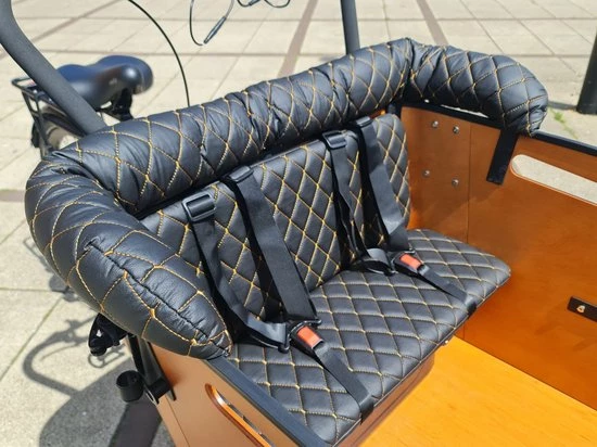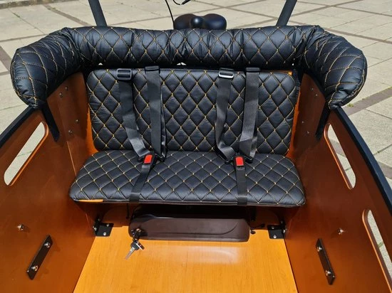 Bakfiets kussens zijn gemaakt van zeer luxe kwalitatief skyleer. Kussens hebben een unieke vlekbestendige toplaag waardoor het makkelijk is om vele vlekken eenvoudig te reinigen d.m.v. water en zeep. Kussens hebben een enorm sterk en een zeer hoge slijtvastheid.