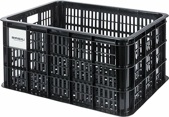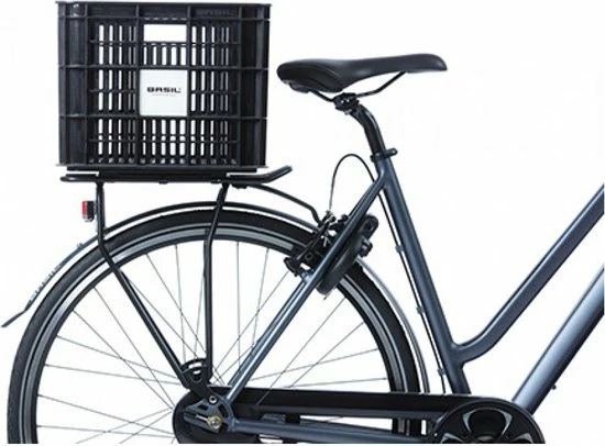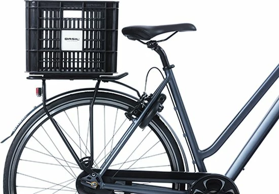 De Basil fietskrat in de maat L is een zwarte fietskrat voor op een dames- of herenfiets. De fietskrat is gemaakt van duurzaam materiaal, heeft een inhoud van 40 liter en is geschikt voor het MIK systeem.