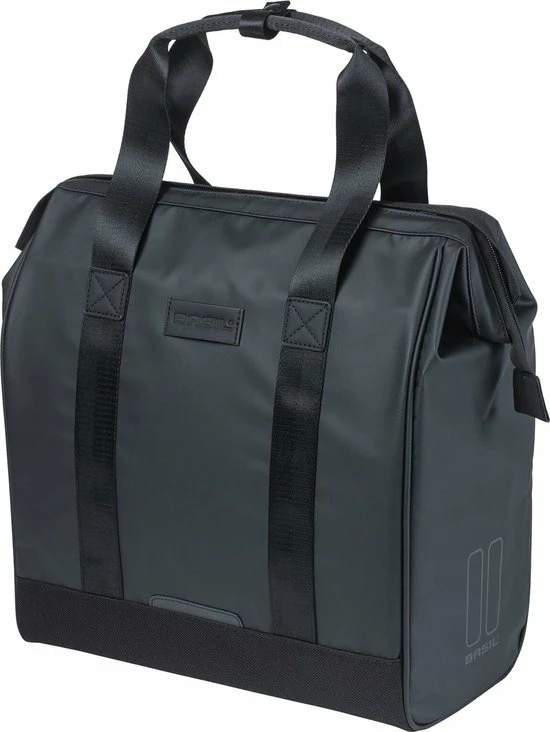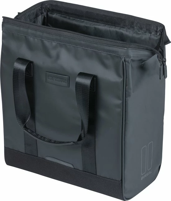 Met de Basil Grand fietsshopper wordt boodschappen of andere inkopen doen een feestje. Hij ziet er namelijk stijlvol en luxe uit, mede dankzij de zwarte kleur. Bovendien is hij gemaakt van sterk tarpaulin en beschikt de shopper over een groot hoofdvak inclusief een gepolsterd (laptop)vak. Handig voor je studie aan de universiteit of voor je kantoorwerk. Met 23 liter inhoud kan je er dan ook de nodige boodschappen of andere spullen in kwijt. De tas is vormvast en dankzij de grootte kun je er met gemak pakken drinken staand in kwijt.