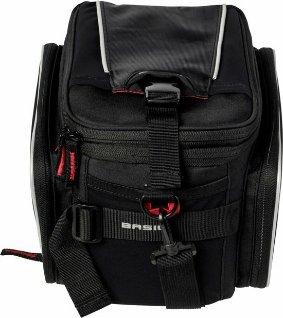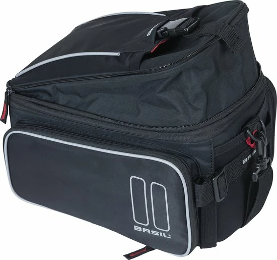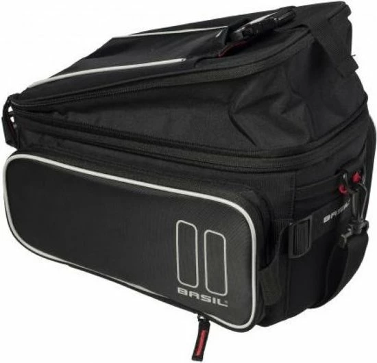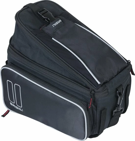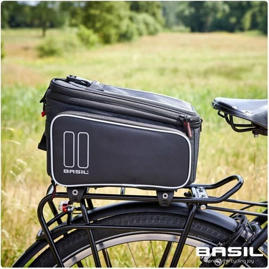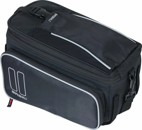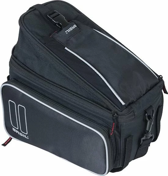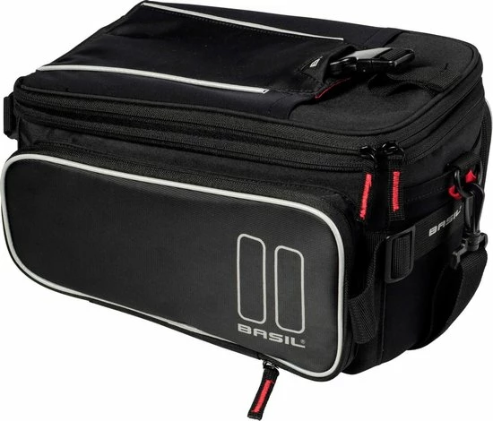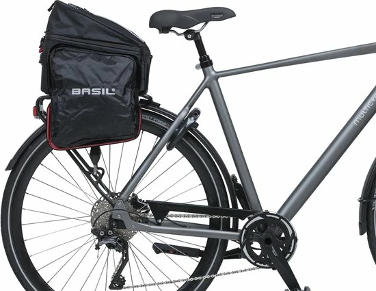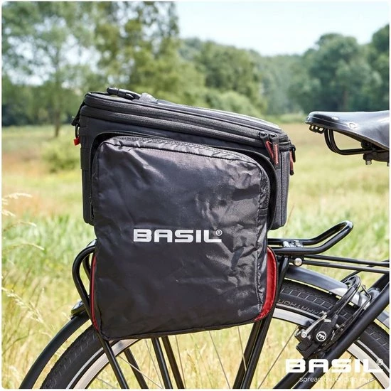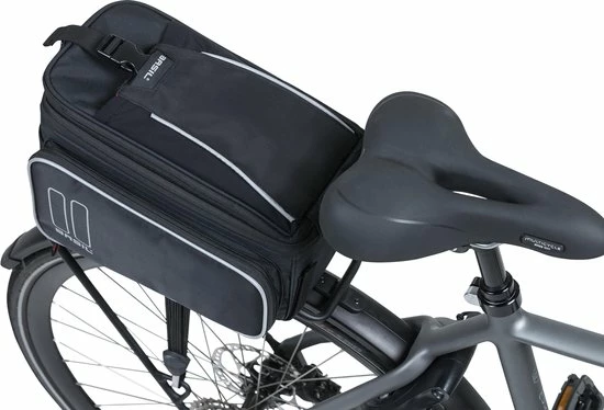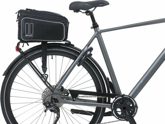 De Basil Sport Design Trunkbag is een veelzijdige bagagedragertas die geschikt is voor een reguliere fiets en een e-bike. Deze zwarte bagagetas voor aan een bagagedrager is een uitkomst voor iedereen die graag lange fietsritten maakt en altijd wel wat spullen met zich meeneemt. Je kunt er bijvoorbeeld je drinkflesje in kwijt of een fietskaart. Natuurlijk biedt de tas ook optimale bescherming voor bijvoorbeeld een smartphone. Daarmee voorkom je dat deze uit je broek- of rokzak valt. Met een volume van 7 tot 15 liter is er in ieder geval voldoende ruimte voor het hoogstnoodzakelijke. De buitenkant van de tas is gemaakt van waterafstotend polyester en de kwaliteit van de fietstas wordt gewaarborgd door een stevige binnenvoering. De tas beschikt over diverse vakken en de uitbreidbare zijvakken zijn voorzien van een rits. Heel praktisch om een overzicht te bewaren van je bagage. De bagagedragertas beschikt over zowel een handgreep als een afneembare schouderriem en is dus gemakkelijk overal mee naartoe te nemen. Het reflecterende materiaal zorgt ervoor dat je altijd goed zichtbaar bent en je hebt de mogelijkheid om ledverlichting aan je bagagedrager te bevestigen. Wil je ook een kijkje nemen bij de andere fietsproducten van Basil? Bekijk het aanbod elders op de website voor nog meer keuze. Eigenschappen: De bagagedragertas van Basil Sport Design is gemaakt van waterafstotend polyester. De inhoud van de tas bedraagt 7 liter, maar loopt dankzij de uitbreidbare zijvakken op tot maar liefst 15 liter. Reflecterende details zorgen ervoor dat je in het donker altijd goed zichtbaar bent. De fietstas is eenvoudig op je bagagedrager te bevestigen dankzij het Universal Bridge systeem. Perfect voor een E-bike.