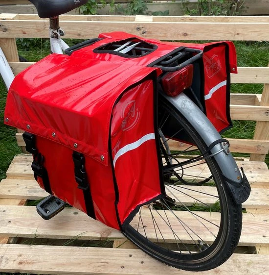 – De fietstas is gemaakt van oersterk vrachtwagenzeil en staalgaren. Je kunt je fietstassen vol laden, hij zal niet scheuren!
