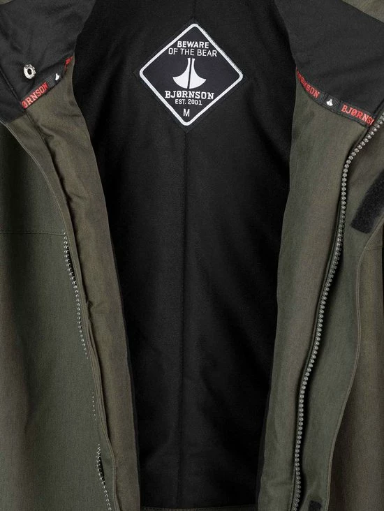 De gewatteerde stof en winddichte voering maken de regenjas winddicht. Elastische manchetten met windvanger en klittenband verstelling zorgen dat de mouwen winddicht afsluiten. De verstelbare taille en kraag en een flap over de rits houden wind en regen tegen. Aan de binnenzijde is de jas afgewerkt met een warme fleece voering in de body, mouwen en capuchon. De winterjas is gemaakt van polyester en is voorzien van een warme gewatteerde voering in body, mouwen en capuchon. Deze regen winterjas heeft praktische opbergzakken: twee heupzakken en een borstzak met rits met en een binnenzak met klittenbandsluiting. Deze BJ?RNSON winterjas is gemaakt om je warmte en comfort te bieden.