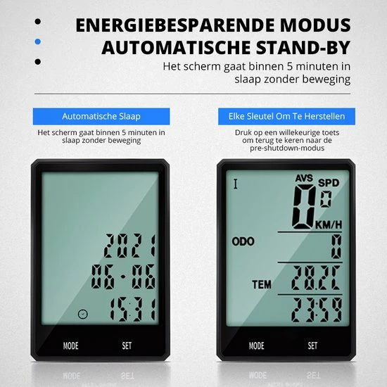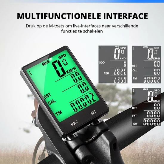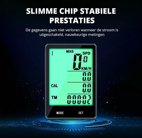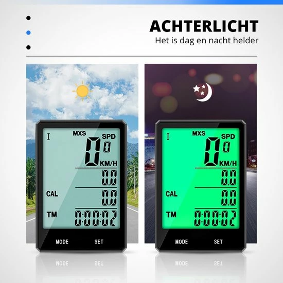 Dag– en nacht achtergrondverlichting – Ontworpen met de groene achtergrondverlichting, kunt u uw statistieken gemakkelijk in de diepe donkere nacht lezen. Het is een geweldige kilometerteller voor fietsen.
