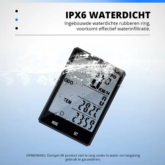 Waterdicht – waterdicht standaard ontwerp maakt hem handiger en duurzamer. Je kunt deze waterbestendige fietscomputer zelfs op regenachtige dagen gebruiken, veeg hem gewoon droog tijdens het fietsen of maak je reis af.