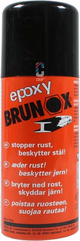 BRUNOX Epoxy Spray is een roestomvormer en primer in ??n. De BRUNOX Epoxy is uitermate geschikt voor het verwijderen van roest op metaal, aluminium, staal en ijzer. De Machines, auto’s en andere metaalobjecten zien er na behandeling weer als nieuw uit! Doordat de BRUNOX spuitbus een roestomvormer en primer in 1 is, kan na uitharding de BRUNOX Epoxy Spray direct overgespoten worden met een 2K lak of verf.