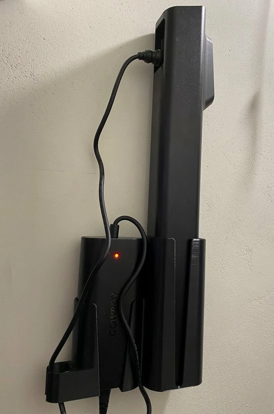 Dit product is 3D geprint en zorgt ervoor dat je je oplader en batterij netjes aan de muur kan ophangen.