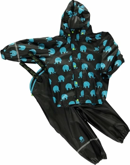 CeLaVi – Regenpak Met Olifant Print Voor Kinderen- Zwart – Maat 130 (128-134cm)