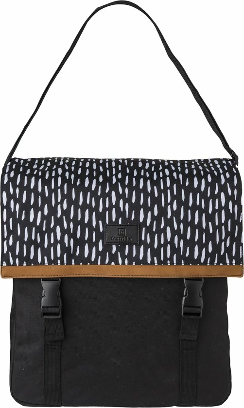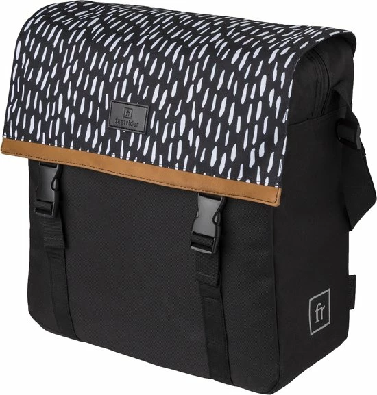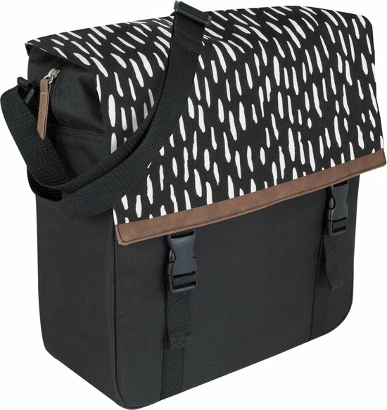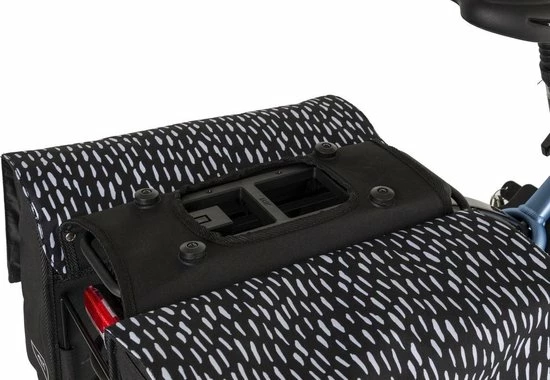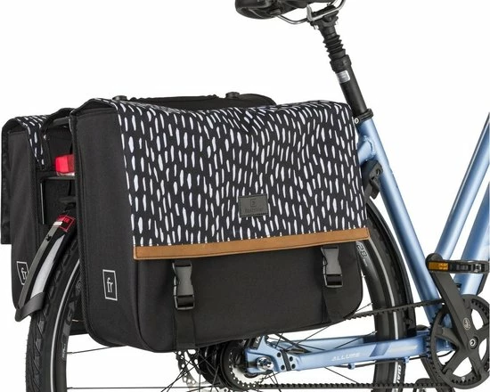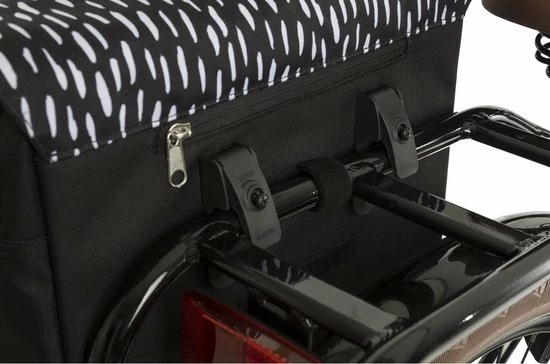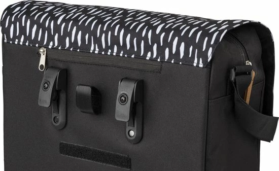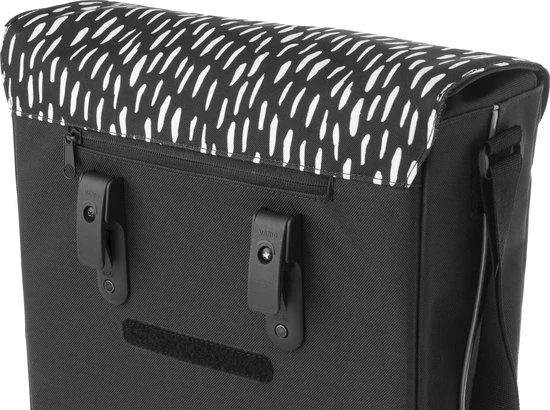 De Fastrider Nara Enkele Fietstas biedt een betrouwbare mix van fris eigentijds ontwerp en hoge functionaliteit. Gemakkelijk van de fiets af te nemen en te gebruiken als schoudertas, en thuis in elke stadse omgeving dankzij de solide waterafstotende constructie. De regenflappen en het waterafstotende materiaal houdt je bagage droog in nat weer, en de reflectieve prints verzekeren een goede zichtbaarheid in het donker. De tas is een uitstekende keus voor e-bikes door de KLICKfix Vario E-Haken.
