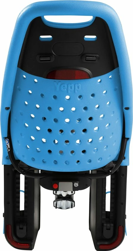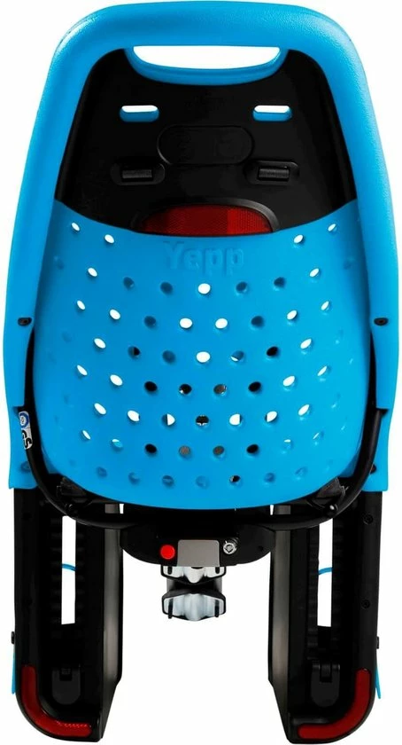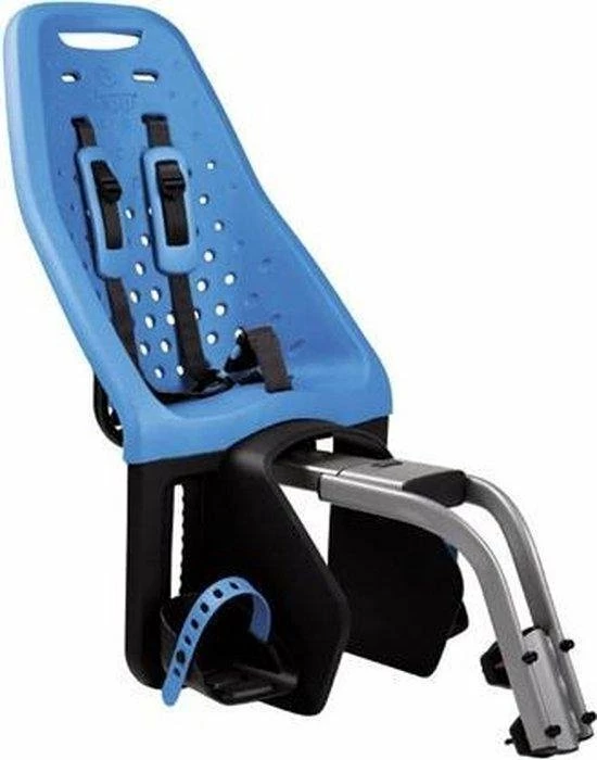 De Thule Yepp Maxi Frame Mount Blue is een fietszitje dat ontworpen is voor achterop de fiets door middel van een zadelbuisbevestiging. Dit zitje is te gebruiken vanaf 9 maanden tot 6 jaar en tot 22 kg. Het is een slim en functioneel zitje met persoonlijkheid voor dagelijks gebruik en kan makkelijk bevestigd worden aan de frame van uw fiets. De Thule Yepp Maxi FM biedt maximaal comfort door de zachte en schokabsorberende zitting en heeft een veilige en goede pasvorm dankzij de verstelbare, vijfpuntsgordel met zachte schouderpads. Ook gemak en flexibiliteit zijn verzekerd naarmate het kind groter wordt dankzij de met ??n hand verstelbare voetsteunen en voetriemen. Ook geeft de ingebouwde reflector en bevestigingspunt voor fietsverlichting u meer veiligheid. Het zitje is makkelijk te reinigen en droog te houden dankzij de waterafstotende materialen van het fietszitje en tevens voorzien van een slot.