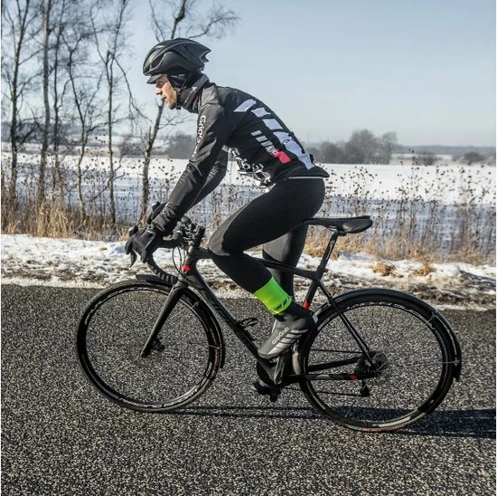 De CyclinGaiter Hi-Vis lost een probleem op dat inherent is aan de meeste schoenen en overschoenen. Water, dat via de bibtights, schoenen of overschoenen binnen sijpelt. Dit wordt voorkomen door het gat tussen beiden af te sluiten. De Hi-Vis eigenschap vergroot je veiligheid tijdens het rijden in donkere omstandigheden.