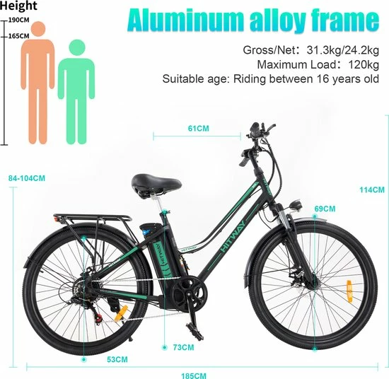 Het maximale laadvermogen is 120 kg. Ge?ntegreerde 26-inch aluminiumlegering band, meer grip.