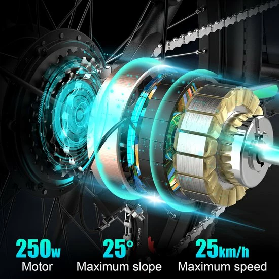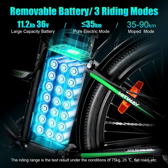 Uitstekende prestaties met afneembare batterij – Een hoogtepunt van de elektrische fiets is onze afneembare 10.4 AH grote capaciteit lithium-ion batterij die zorgt voor langdurige prestaties. Krachtige motor, sterke ondersteuning- 250 W 36 V motor- De hoogste snelheid kan oplopen tot 25 km/u en een maximale helling van 25 graden. In de bromfietsstand kun je gemakkelijk een afstand van 35 tot 90 km afleggen. Aangezien naast het totale gewicht ook het gekozen ondersteuningsniveau, de terreinomstandigheden en weersomstandigheden zoals tegenwind van invloed zijn, is het nauwelijks mogelijk een exacte indicatie te geven van de actieradius van e-bike accu’s.
