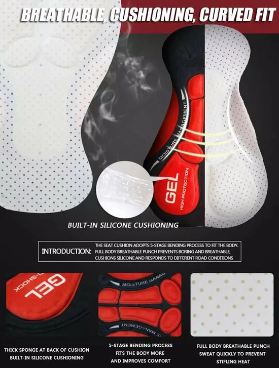 De voornaamste reden om een fietsonderbroek te dragen is natuurlijk om zadelpijn te voorkomen. Zadelpijn kun je krijgen door alle schokken die je ophangt. Deze zeem is schokabsorberend waardoor je niet elke schok al te veel voelt. De druk op je huid en lichaam is hierdoor beperkt.