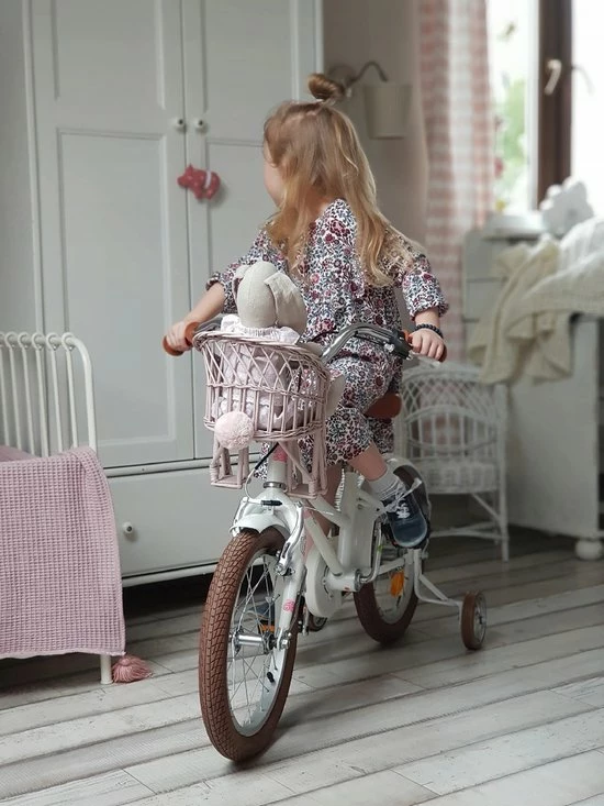 Een mooie fietsmand voor een pop of een teddybeer. Dankzij de mand kan de favoriete mascotte van uw kind hem vergezellen op elke fietstocht.