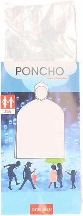Wegwerp regen poncho voor kinderen wit. Afmeting (hxb): ongeveer 63 x 70 cm. Materiaal: polyester.