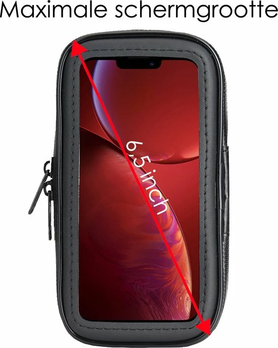 LET OP: Bij het bevestigen van de fiets telefoonhouder waterdicht dient er een duidelijke klik hoorbaar te zijn. Deze telefoonhouder is in verschillende maten verkrijgbaar. Het gaat hier om de XL versie (maximaal 6,5 inch).