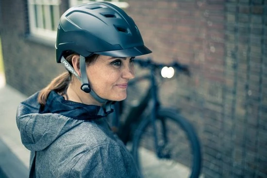 De huidige trend van E-bikes wordt steeds meer ge?mplementeerd en een speciale fiets heeft daarom een speciale helm nodig. Speed E-bikes hebben hun eigen eisen, daarom is deze helm zo gemaakt dat gebruikers deze helm veilig kunnen gebruiken. Onze E’City-helm is ontwikkeld om te voldoen aan de specifieke eisen van NTA 8776 en het ontwerp is ontworpen om bij uw dagelijkse outfit te passen. Blijkbaar ziet de speed E-Bike helm eruit als een normale fietshelm, maar de belangrijkste verschillen zijn het grotere beschermingsgebied van het hoofd en het absorptievermogen van een grotere impact. Het E’city model combineert een eenvoudig en casual design en bevat voldoende luchtkanalen om voor een goede ventilatie te zorgen. Het vizier zorgt voor voldoende schaduw tijdens het woon-werkverkeer. Met een eenvoudig aan te passen retentiesysteem, verstelbare banden en zijvergrendeling, bevat de E’city een set thermogevormde binnenkussens die helpen bij het absorberen van transpiratie. Maat: