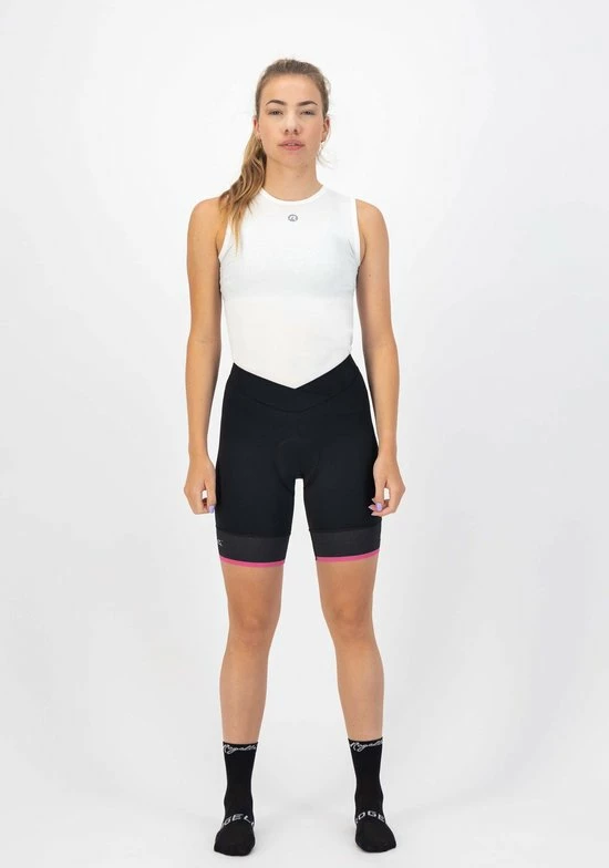 Een echte sportster blijft zichzelf uitdagen. Net zoals onze productdesigners die zichzelf blijven uitdagen om onze designs te blijven verbeteren. Deze 2.0 versie van de Select fietsbroek biedt nog meer comfort dan haar populaire voorganger, de eerste versie van de Rogelli Select short. Deze verbeterede versie is voorzien van een vernieuwde Power Gel zeem: een hoogwaardige kwaliteitszeem met comfortabele gelcomponenten. De Select 2.0 heeft een aerodynamische Pro pasvorm en is gemaakt van een elastische stof. Het comfortabele design van de Select 2.0 korte fietsbroek wordt versterkt door de brede en lasergesneden elastische band aan de broekspijpen, die aan de aan de binnenzijde voorzien van Siliconen grip, zodat de broek niet op kruipt. De v-vormige tailleband zorgt voor extra comfort en elasticiteit. Daag jezelf uit en verbeter je prestaties in de Select 2.0 fietsbroek van Rogelli.