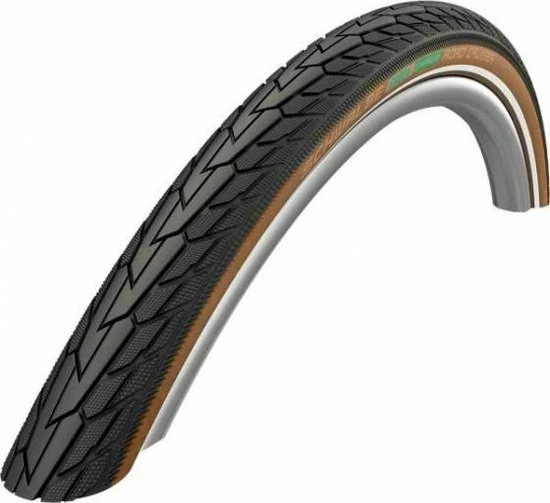 Schwalbe Road Cruiser K-Guard buitenband Specificaties: Inch maat: 28 x 1.60 ETRTO maat: 42-622 Type fiets: cruiser Type band: draadband Reflectie: ja Kleur: zwart/bruin Materiaal: rubber Gewicht: 705 gram Bandenspanning: 2.50/4.50 bar Maximale belasting: 100 kg EPI: 50 Producttype: HS484