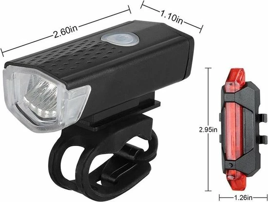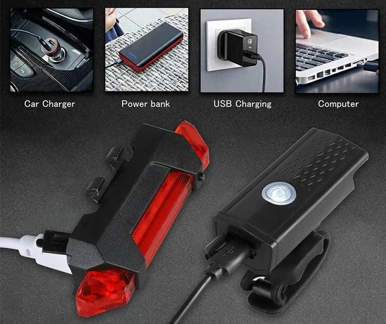 Shopdomain Waterdicht Fiets Lamp LED-Fietsverlichting Set-Voorlicht En Achterlicht-Oplaadbare USB Fietslamp Met Adapter-waarschuwing Licht