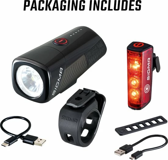 Sigma BUSTER 400 USB LED Fiets Verlichtingset 400 Lumen + Blaze Flash USB Achter Met Remlicht Functie – Li-ion Accu – Oplaadbaar