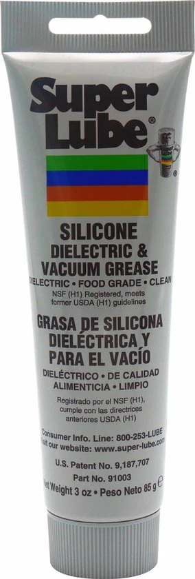 Super lube di?lektrisch vet is een siliconenvet met hoge di?lektrische weerstand voor het afdekken, beschermen en isoleren van elektrische componenten en connectoren.