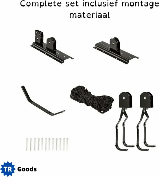 Bespaar ruimte in je schuur of berging met dit handige opangsysteem voor uw fiets. Met het handige katrol lift systeem hang je je fiets eenvoudig aan het plafond. Dit bespaart niet alleen ruimte maar voorkomt ook beschadigingen aan je fiets.