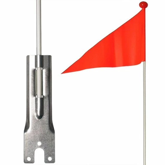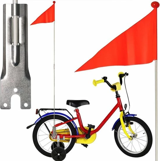 De fietsvlag is gemonteerd op een flexibele zweepstaafvlag. Voor deze veiligheidsvlag heb je geen bevestigingsmateriaal nodig. Je draait de achterasmoer wat losser, je steekt het ijzeren plaatje ertussen en draait de moer weer vast. Daarom is de fietsvlag ook makkelijk te bevestigen op bijvoorbeeld een fietskar of bagagekar. De Veiligheidsvlag verhoogt jouw zichtbaarheid in het verkeer.