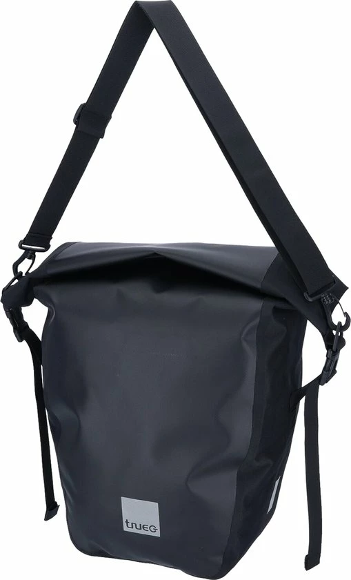 Uw praktische tas voor de volgende fietstocht! Deze tas is gemaakt van waterdicht materiaal. Deze fietstas is ook als schoudertas te dragen. De schouderriem is verstelbaar en afneembaar waardoor deze fietstas makkelijk over de schouder gedragen kan worden. Het logo op de voorkant zijn reflecterend, ook op de zeikanten zit een reflecterend stuk wat de zichtbaarheid vergoot. Het hoofdvak wordt afgesloten met twee kliksluitingen en een rolsluiting.
