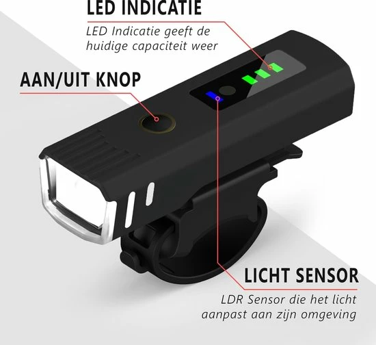Zowel de voorlamp als de achterlamp is oplaadbaar doormiddel van een bijgeleverde USB kabel. Hierdoor kan de lamp lang mee en zijn extra batterijen niet nodig. De oplaadtijd is ongeveer 2 uur.