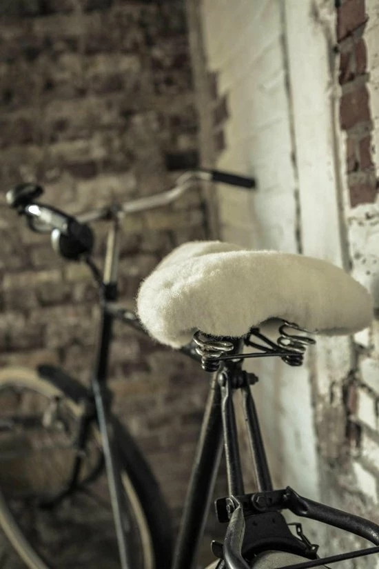 Schapenvacht zadeldek met handige elastiek sluiting zodat het een universele maatvoering is. Voorkomt zadelpijn en transpiratie tijdens het fietsen. En het geeft natuurlijk extra comfort.