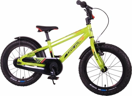 Veiligheid staat voorop! Daarom heeft deze gave fiets een handrem en terugtraprem en een gesloten kettingkast. Daarnaast heeft de fiets reflectoren in de trappers en een leuke bel. Ook aan het comfort is gedacht. De mooie groene Volare fiets heeft een extra licht aluminium frame, een comfortabel zacht zadel, een standaard zodat je fiets netjes blijft staan, en stoere extra brede banden. Om zo lang mogelijk van de fiets te kunnen genieten heeft de fiets een extra lange zadelpen waardoor de fiets n?g langer meegroeit.